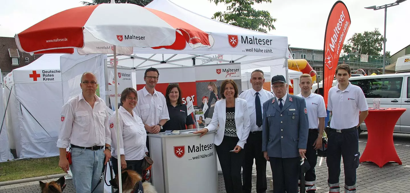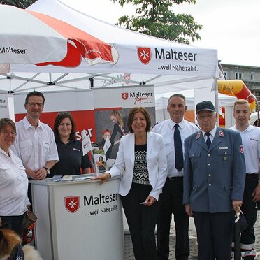 However, not only the foldable and mobile information booth of the Order of Malta attracted everyone – it was also the “heartbreakers” on four paws: The therapy and rescue dogs enjoyed being petted by all participants on this warm summer weekend – and not even the prime minister of Rhineland-Palatinate, Ms Malu Dreyer (SPD) could resist them…